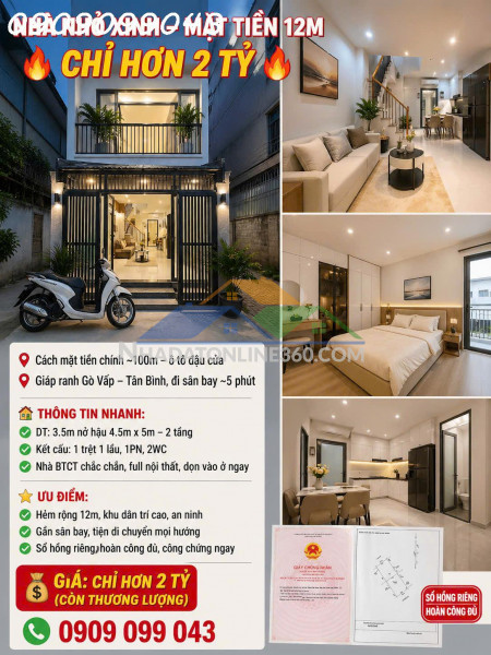r???? ???? NHÀ MỚI 5 TẦNG – HXH PHẠM VĂN CHIÊU, GÒ VẤP ???????? DT: 4x15m (59.3m²) – 5 tầng đẹp, vào ở ngay???? Hẻm xe hơi tới nhà – cách mặt tiền chỉ ~20m???? Khu dân cư đẹp, thuận tiện ở hoặc kinh doanh???? Sổ hồng riêng – hoàn công đầy đủ???? Giá gấp: 7.8 tỷ (TL chính chủ)???? 0909099043 (Hải nhà phố)