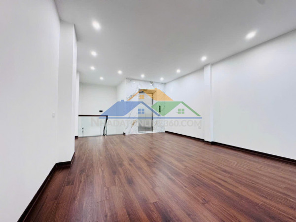 Không gian nội thất hoàn thiện cao cấp: sàn đá bóng kính, hệ đèn LED âm trần tinh tế, tường ốp đá – gỗ sang trọng.Mặt tiền rộng,