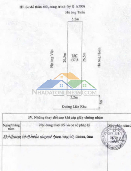 • Diện tích ~138m• Mặt tiền 5.2m• Hướng Nam• Đường rộng 5m thông các ngả
