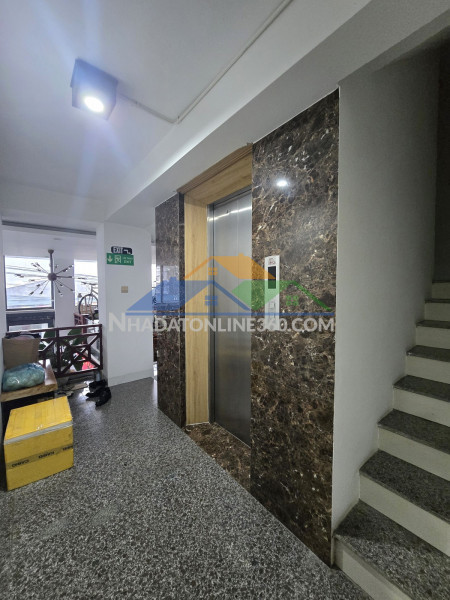 Diện tích đất 121m2, ngang 8m nở hậu, thế đất đẹp hiếm trong khu vực. Công trình gồm 4 tầng 1 tum, được trang bị thang máy và hệ thống phòng cháy chữa cháy đầy đủ.