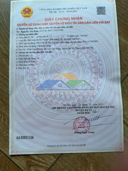 BÁN ĐẤT CHÍNH CHỦ SẴN SỔ MẶT TIỀN 2 LÀN GIÁ TỐT TẠI TU VŨ-THANH THUỶ- PHÚ THỌ