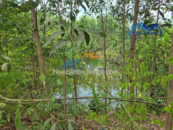 -Trên đất trồng cây tràm, có ao cá, có căn nhà nhỏ.