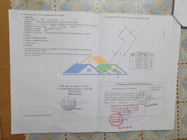 - Vị trí: Cạnh số 72A, Đường Sông Lu, Xã Hòa Phú, Huyện Củ Chi, Tp Hồ Chí Minh (khu Hòa Phú cũ), huyện Củ Chi. - Diện tích: 1212,8 m²- Đất trồng cây lâu năm.- Có 120 m² thổ cư, thời hạn sử dụng lâu dài - Pháp lý: Sổ hồng riêng, pháp lý rõ ràng, sang tên ngay. - Đặc điểm: + Khu đất hình chữ L, mặt tiền đường 13,58 m, sâu 27,51 m, nở hậu 59,30 m + Hạ tầng hoàn chỉnh, giao thông thuận tiện + Thích hợp xây biệt thự nghỉ dưỡng, nhà vườn, hoặc xưởng sản xuất nhỏ.