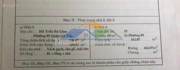 Chính chủ xưa giờ cần bán MT Trần Bá Giao P5 GV (cạnh MT đường Số 20). - DT 6,5m x 25m CN 163m². - Hiện dãy trọ đang cho thuê. Giá bán 17 tỷ thương lượng. Liên hệ: 0933523239 Tâm Nhà Đất
