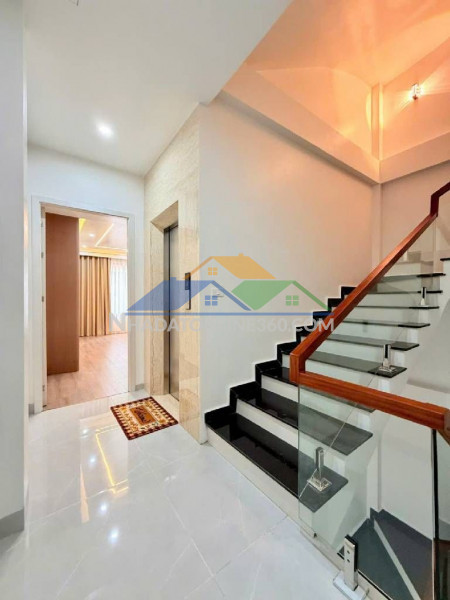 Diện tích 68m2, nhà 5 tầng có thang máy, ô tô đỗ cửa, thiết kế hiện đại, không gian thoáng.