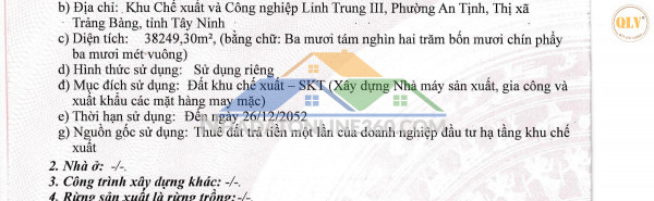 Bạn đang xem tin đăng "BÁN nhà xưởng Khu Chế Xuất Linh Trung 3, Trảng Bàng, Tây Ninh 22.000m²", có mã số #306517, được cập nhật . Thông tin rao vặt là do người đăng tin đăng tải toàn bộ thông tin. Chúng tôi hoàn toàn không chịu trách nhiệm về bất cứ thông tin nào liên quan đến các thông tin này. Hãy thông báo cho chúng tôi nếu tin này không hợp lệ.