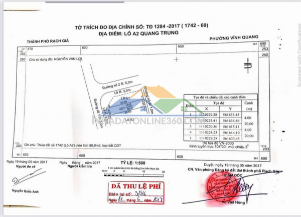 - Vị trí: Lô A2, đường Quang Trung, phường Vĩnh Quang, TP. Rạch Giá, Kiên Giang.* Tiện ích: - Đất nằm trong hẻm 333B Quang Trung, cách đầu hẻm vài trăm mét. -Đường trước đất rộng khoảng 5m, lề 3m, khu vực thông thoáng, thuận tiện đi lại.- Khu dân cư Đoàn Cải Lương, dân cư ổn định. - Đất đã có sẵn điện nước, xung quanh có nhà xây dựng sẵn. Phù hợp mua xây nhà ở hoặc đầu tư để dành cho con cái sau này.- Đầu tư sinh lời cao- Sổ Hồng Chính Chủ, Pháp Lý rõ ràng