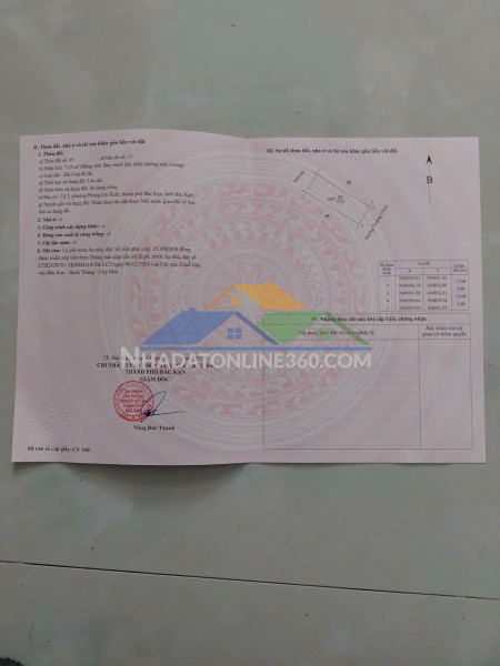- Địa chỉ : Tổ 7 (nay là Tổ 7A), Phường Bắc Kạn, Tỉnh Thái Nguyên- Địa chỉ cũ : Tổ 7 Phường Phùng Chí Kiên , TP Bắc Kạn- Diện tích: 75m² (thổ cư 100%)- Kích thước: rộng 5m, dài 15m- Khu vực dân cư đông đúc, thuận tiện đi lại, gần cơ quan hành chính- Xung quanh đầy đủ các tiện ích khác nhau : gần chợ , gần trường học ....- Phù hợp an cư sinh sống và lập nghiệp - Pháp lý rõ ràng