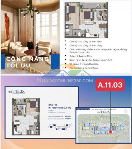 *** CẦN SANG NHƯỢNG CĂN HỘ THE FELIX đang trong giai đoạn hoàn thiện, bàn giao tháng 6-2027* THE FELIX danh mục bàn giao cực sịn sò. Tự tin chất lượng tỉ mỉ từng vật dụng qua các thương hiệu cao cấp: An Cường, Hafele, Panasonic, Inax, Kone,...* Diện tích ; 45m2, gồm 1 phòng ngủ 1 wc* Gía bán : 2 tỷ 250 tr- Tiện ích xung quanh : Đầy đủ gần chợ, trường, siêu thị, hồ bơi...- Giao thông thuận tiện đi lại dễ dàng- Khu dân cư thân thiện an ninh tốt. Phù Hợp Mua đầu tư hoặc cho thuê. Tiềm năng lớn đảm bảo sinh lời - Pháp lý đầy đủ thủ tục nhanh chóng