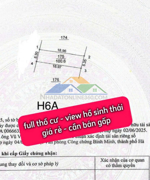 Quy mô: 100m2 full thổ cư.