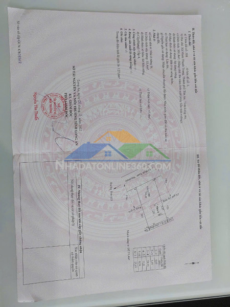 - Diện tích đất: 300m2 (12*25m), full thổ cư, đất vuông vắn. - Diện tích nhà: 56m2 (7*8m), đã hoàn công.