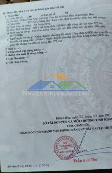 CHÍNH CHỦ CẦN BÁN ĐẤT TẠI NINH THỌ, NINH HÒA, KHÁNH HÒA, CÁCH BIỂN 3KM