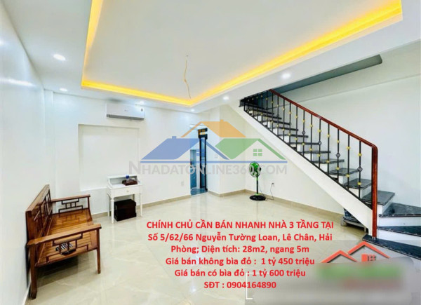 CHÍNH CHỦ CẦN BÁN NHANH NHÀ 3 TẦNG TẠI Số 5/62/66 Nguyễn Tường Loan, Lê Chân, Hải Phòng