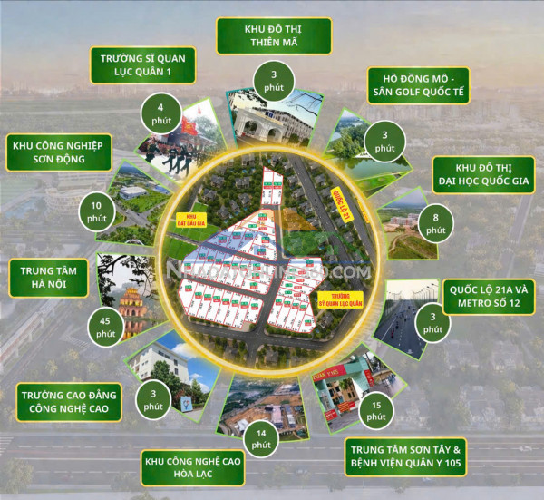 - 200m ra mặt đường Ql21A, 500m ra trường cao đẳng nghề Chất Lượng Cao, 1km ra trục Hồ Tây Ba Vì lên đến 100m, 5km về đến Đại Học Quốc Gia Hòa Lạc và Công Nghệ Cao, Tuyến Metro5...