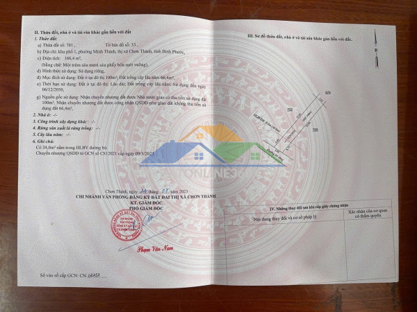 CHÍNH CHỦ GỬI Đất Trung Tâm, Chơn Thành Bình Phước mặt tiền đường nhựa số 4 giá hơn 6xx triệu. - Diện tích: 5x33 = 166m2 — 100m THỔ CƯ- ĐƯỜNG NHỰA số 4. - KHU PHỐ 1 phường Minh Thành, Chơn Thành, Bình Phước ** MUA Ở ĐẦU TƯ, XÂY TRỌ TIỀM NĂNG. - Tiện ích dân cư đồng xung quanh đều xây nhà trọ có đầy đủ, điện vỉa hè,... - Cách công nghiệp Becamex giai đoạn 3 tầm 700m. - Cách ngã tư đồng hữu đường thông về Bình Dương tầm 2 phút.Liên hệ : 0909563079