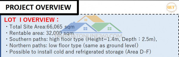 Diện tích kho: 32.000m² (có thể chia nhỏ linh hoạt theo nhu cầu thuê)