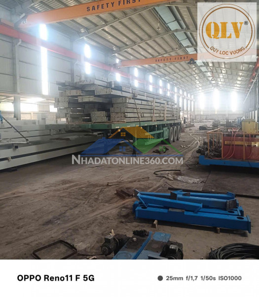 Kết cấu nhà xưởng kiên cố, mái cao, thông thoáng, phù hợp sản xuất công nghiệp nặng hoặc nhẹ