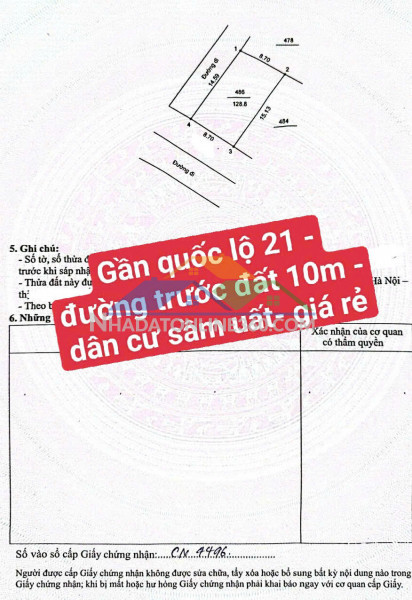 Chủ gửi bán mảnh đất vị trí vàng đường 10m, sẵn sổ đỏ tại gần ql21