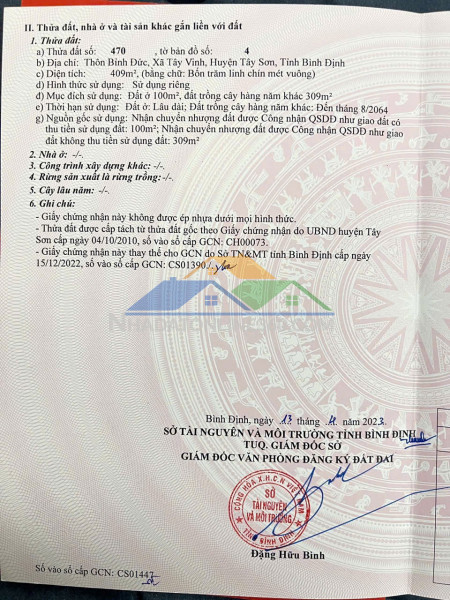 ** Diện tích: 409 m² (trong đó có 100m2 thổ cư)** Giá bán: 500 triệu ( có thương lượng )
