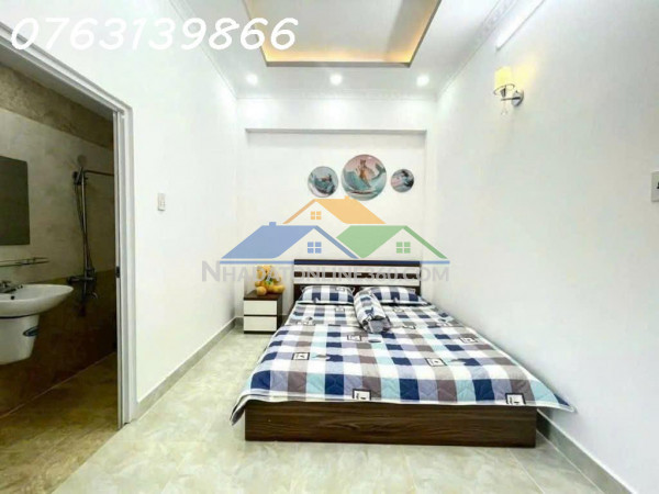 * Kết cấu: Nhà mới 3 tầng – 4PN, 4WC+ Đường trước nhà khá lớn 7-8m lận.+ Sân trước dỗ xe thoải mái.+ Phòng khách thoáng sáng, bộ ghes sofa cao cấp.+ Liền kề bếp thiết kế chữ L, tối ưu công năng, tặng luôn cái tủ lạnh 2 cánh siêu to, khổng lồ.+ Có 4 phòng ngủ trang bị sẵn nội thất cao cấp.+ Có 4 wc thiết kế đều cho mỗi tầng.