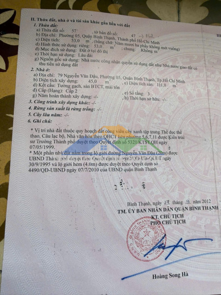* Diện tích: 52,8 m² (3,3 x 16 m)* Giá: 21 tỷ* Kết cấu: Nhà 2 tầng (1 trệt, 1 lầu), 2 phòng ngủ, 2 WC* Hiện trạng: Nhà sử dụng tốt, phù hợp ở hoặc kinh doanh* Vị trí: 79 Đường Nguyễn Văn Đậu, Phường 5, Quận Bình Thạnh, TP Hồ Chí Minh (địa chỉ mới: Phường Bình Lợi Trung, TP Hồ Chí Minh)* Tiện ích: Gần chợ, trường học, siêu thị, khu dân cư đông đúc, tuyến đường sầm uất* Phù hợp: Ở lâu dài, kinh doanh, đầu tư* Pháp lý: Sổ hồng đầy đủ, sang tên nhanh* Liên hệ: 0933916100 – 0903395764