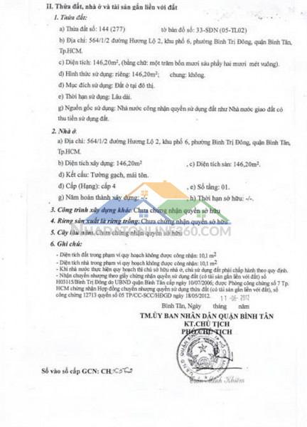 HOT HOT NHÀ ĐẸP - GIÁ TỐT- CẦN BÁN NHÀ Tại Phường Bình Trị Đông, Bình Tân, TP HCMD/c: hẻm 564 Hương Lộ 2, KP6, Bình Trị Đông, Bình Tân, TP Hồ Chí Minh ( nay là phường Bình Trị Đông, TP Hồ Chí Minh)Diện tích: 146.5m2 (12.1x12.1m) Giá chỉ: 9,8tỷ (còn thương lượng)Thông tin mô tả:- Vị trí hẻm 564 Hương Lộ 2, KP6, Bình Trị Đông, Bình Tân, TP Hồ Chí Minh ( nay là phường Bình Trị Đông, TP Hồ Chí Minh)- Diện tích: 12.1 x 12.1m- Kết cấu: 1 tầng (nhà cấp 4), 2 phòng ngủ, 1wc- Đặc điểm: Hẻm 3m, vị trí đẹp, gần trường học, bệnh viện, thuận tiện đi lại. Phù hợp cải tạo cho thuê căn hộ dịch vụLiên hệ dẫn đi xem nhà: chú Oai: 0913910359
