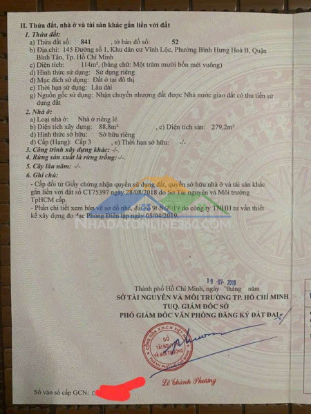 Địa chỉ : Đường Số 1 Kdc Vĩnh Lộc, Phường Bình Hưng Hoà B, Quận Bình Tân, Tp Hồ Chí MinhDiện tích: 6 x 19m.lh*09036l4368Giá bán : 14 tỷ , còn TL