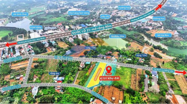 Thông tin chi tiết: Tọa lạc tại vị trí cực đẹp: Lõi Khu Công nghệ cao Hòa Lạc, cách mặt đường QL21 chỉ 200m (quy hoạch mở rộng lên tới 80m).