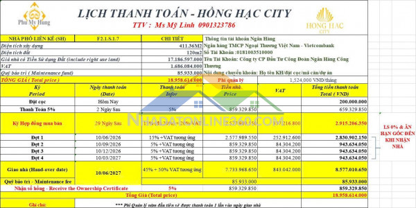 Căn nhà phố tại Hồng Hạc City hiện đang có lịch thanh toán phù hợp để kiểm soát dòng tiền trong 2–3 năm tới: