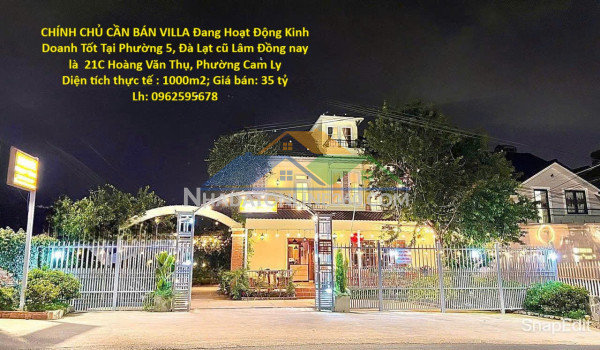 VỊ TRÍ ĐẸP – GIÁ TỐT – CHÍNH CHỦ CẦN BÁN VILLA Đang Hoạt Động Kinh Doanh Tốt Tại Phường 5, Đà Lạt cũ Lâm Đồng nay là 21C Hoàng Văn Thụ, Phường Cam Ly