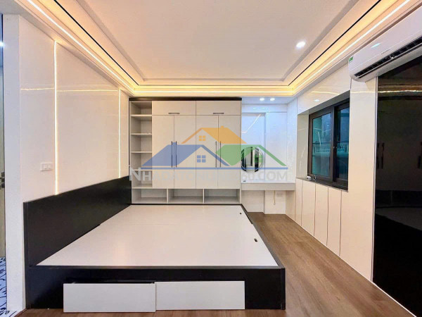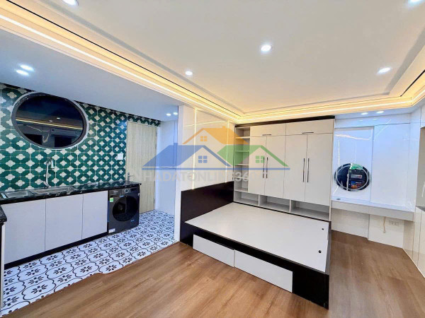 + Nội thất siêu đẹp, phong cách hiện đại.+ Có hệ thống PCCC.+ Mặt tiền rộng, thoáng sáng tự nhiên.+ Nhà xây khung cột bê tông, tự xây vô cùng chắc chắn. - Tầng 1: Để xe.- Tầng 23456: Mỗi tầng 1 phòng khép kín, có bếp, full nội thất, ở hay cho thuê đều tiện., dòng tiền 30tr/tháng- Sổ vuông đẹp.