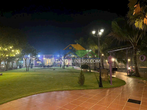 DT: 17m x 76m, tổng: 1.238m², có 800m² thổ cư, phần còn lại đất nông nghiệp. DT sàn: 600m² – khuôn đất đẹp. Phía sau còn đất trống, có thể mở rộng thêm khoảng 700m² sau khi hoàn công.