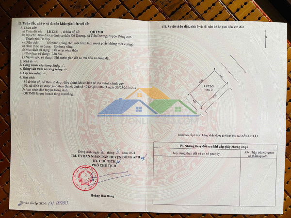 ???? BÁN 180m2 – KHU TÁI ĐỊNH CƯ BỘ CÔNG AN, TIÊN DƯƠNG – ĐÔNG ANH ????