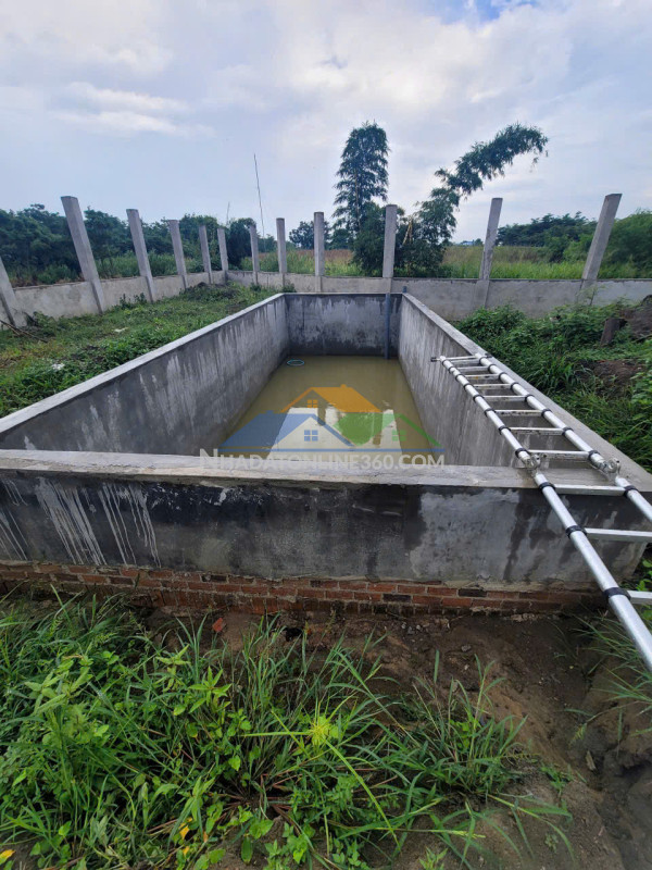 Nhà đang xây 1 trệt 1 lầu, có 6pn, 4 toilet, 1 phòng thờ, 1 phòng khách, 1 bếp, có hồ bơi