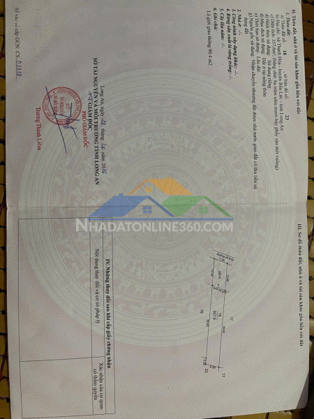Diện tích : 350 m2( ngang 7 dài 50m )Giá bán : 2,4 tỷ giảm còn 2,35 tỷ