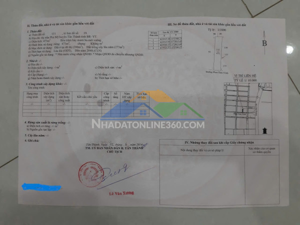 CHÍNH CHỦ CẦN BÁN MINI HOTEL Tại Trung Tâm Phú Mỹ, Bà Rịa Vũng TàuMini Hotel (tên cũ “Nhà Nghỉ Xanh”) số nhà 38 – Phan Châu Trinh, khu 2, tổ 4, Ngọc Hà, Phường Phú Mỹ, tp.HCM (trước đây là thị xã Phú Mỹ, tinh Bà Rịa - Vũng Tàu)*Tổng diện tích: 473 m2, Chiều sâu đất 46,3 m. diện tích thực đo 490 m2* Giá bán: 20 tỷ VND, còn thương lượng