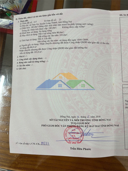 (Hết hạn) Chính chủ cần bán nhanh lô đất kèm nhà tại xã tam an, huyện long thành, tỉnh đồng nai