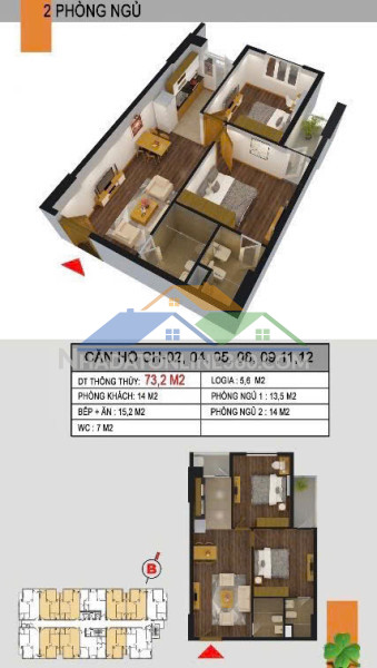 – Diện tích: 75 m², thiết kế 2 phòng ngủ – 2 vệ sinh