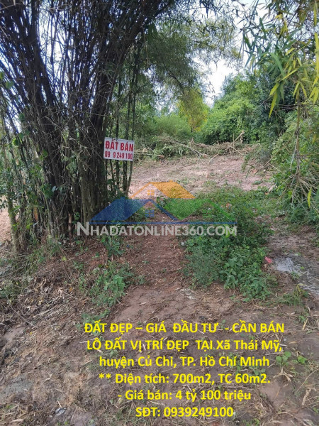 ĐẤT ĐẸP – GIÁ ĐẦU TƯ - CẦN BÁN LÔ ĐẤT VỊ TRÍ ĐẸP TẠI Xã Thái Mỹ, huyện Củ Chi, TP. Hồ Chí Minh