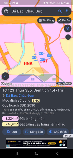Ngang 25mx60m CN 1480m2 ????????Đất quí hoạch Fun thổ cư .????????hiện tại có 160m2 đất ở .